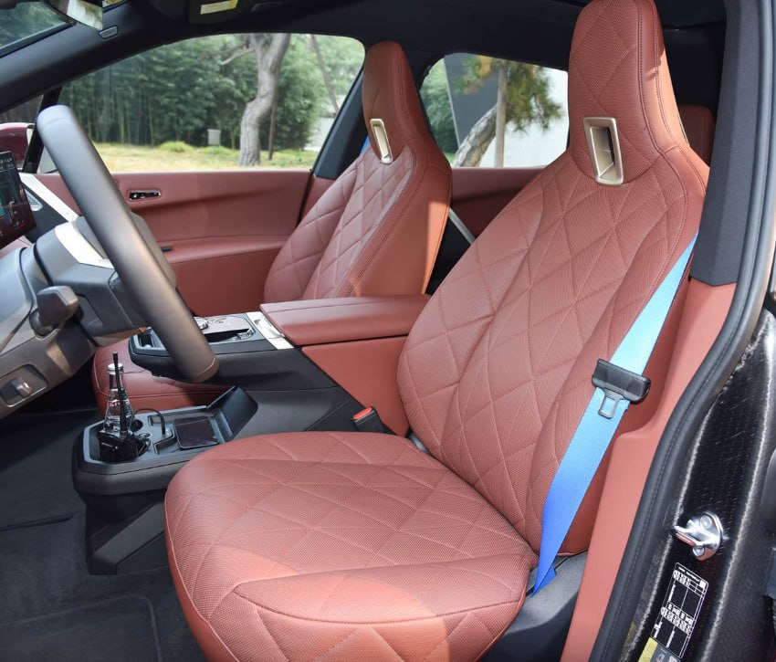 Інтер’єр просторий, з високоякісними матеріалами, панорамним дахом, безрамковими дверима, великим вигнутим дисплеєм BMW iDrive, підтримкою Apple CarPlay і Android Auto, вентиляцією та підігрівом сидінь, аудіосистемою преміум-класу. В авто також є повний набір асистентів водія та система автоматичного паркування.